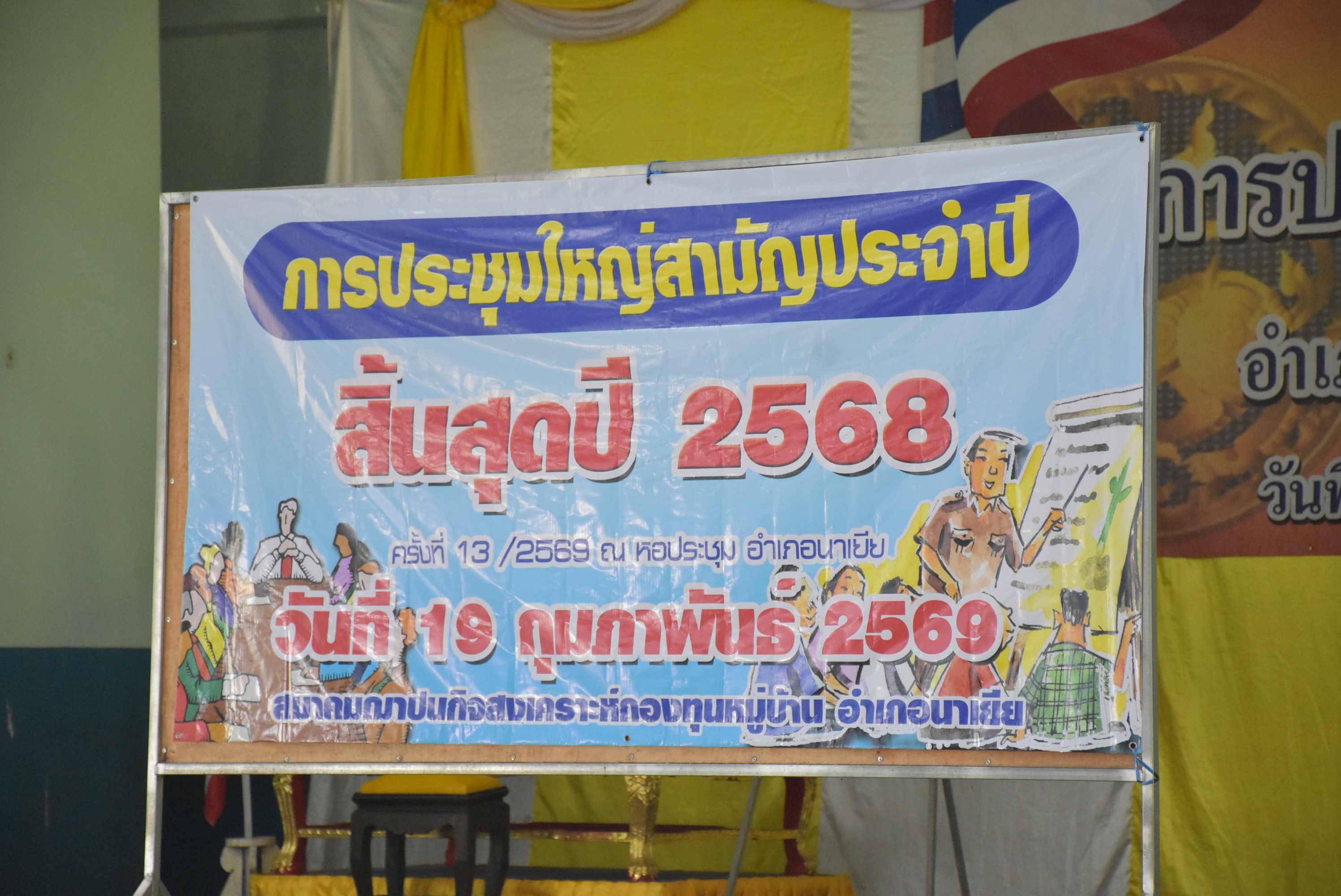 วันพฤหัสบดี, 19 กุมภาพันธ์ 2569 09:45“วันพฤหัสบดี ที่ 19 กุมภาพันธ์ 2569 เวลา 9.00 น. นางสาวชัญญานุช สายทอง นายกเทศมนตรีตำบลนาเยีย นางสาวณัฐธิดา อุ่นใจ นักพัฒนาชุมชนชำนาญการ เข้าร่วมประชุมใหญ่สามัญประจำปี สิ้นสุดปี 2568 ครั้งที่ 13/2569 ณ หอประชุม อำเภอนาเยีย สมาคมฌาปกกิจส่งเคราะห์กองหมู่บ้าน อำเภอนาเยีย