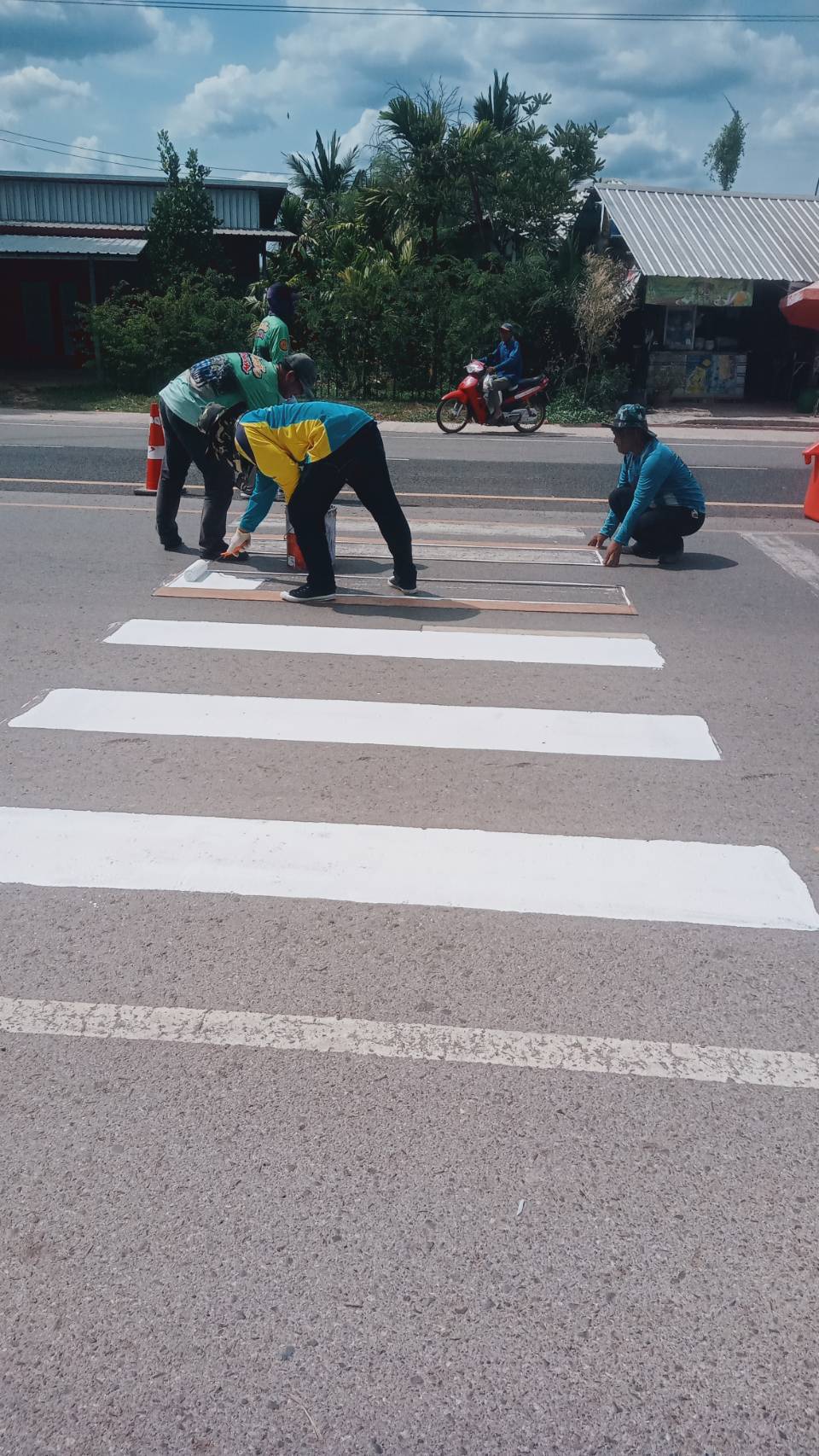 นายกเทศมนตรีตำบลนาเยีย มอบหมายให้ เจ้าหน้าที่กองช่าง เทศบาลตำบลนาเยีย ดำเนินการทาสีทางม้าลายบริเวณหน้าโรงเรียนนาเยียศึกษา