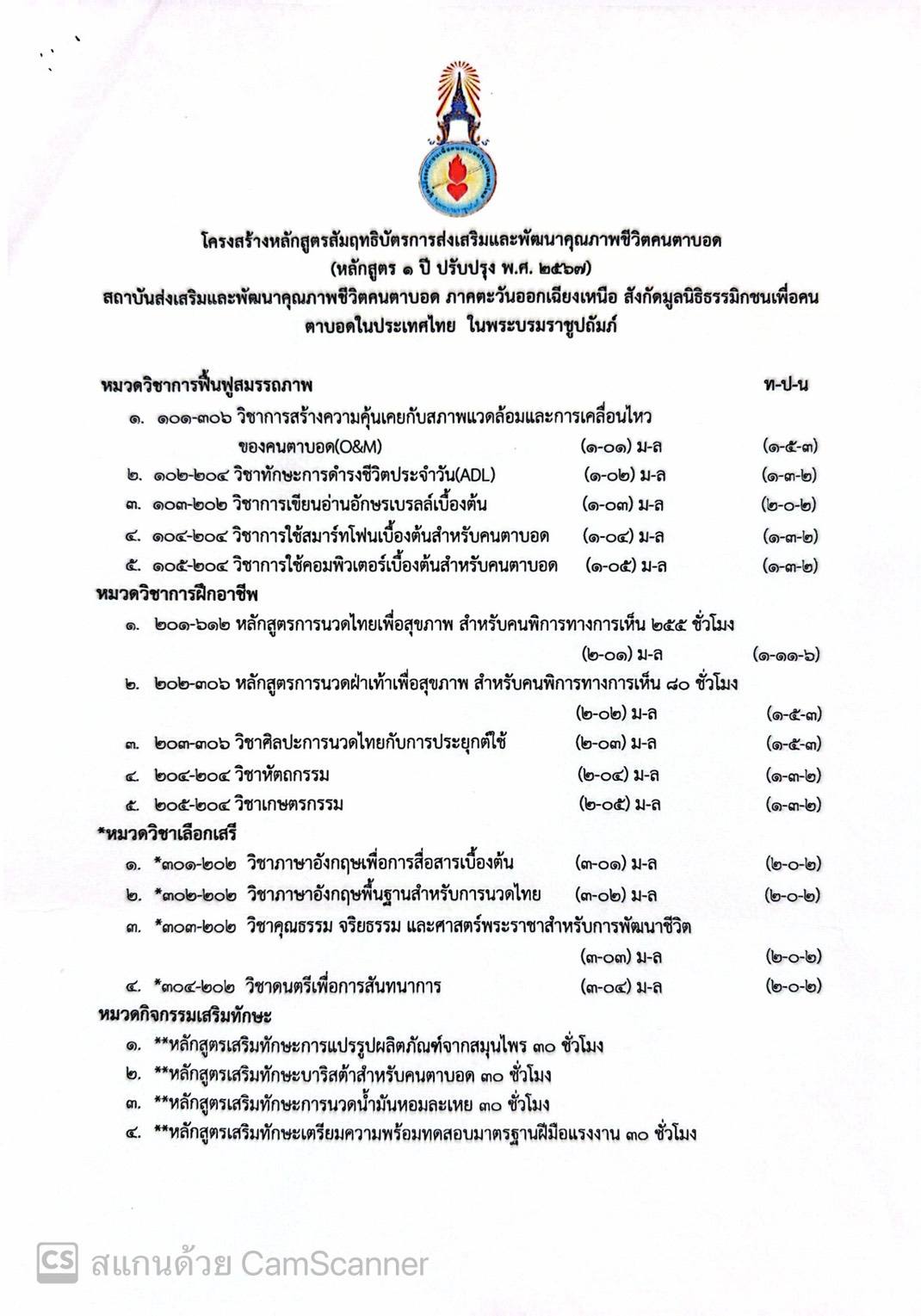 สถาบันส่งเสริมและพัฒนาคุณภาพชีวิตคนตาบอดภาคตะวันออกเฉียงเหนือ กำหนดเปิดรับสมัครผู้พิการทางการเห็นที่ยังไม่ได้รับการฟื้นฟูสมรรถภาพ