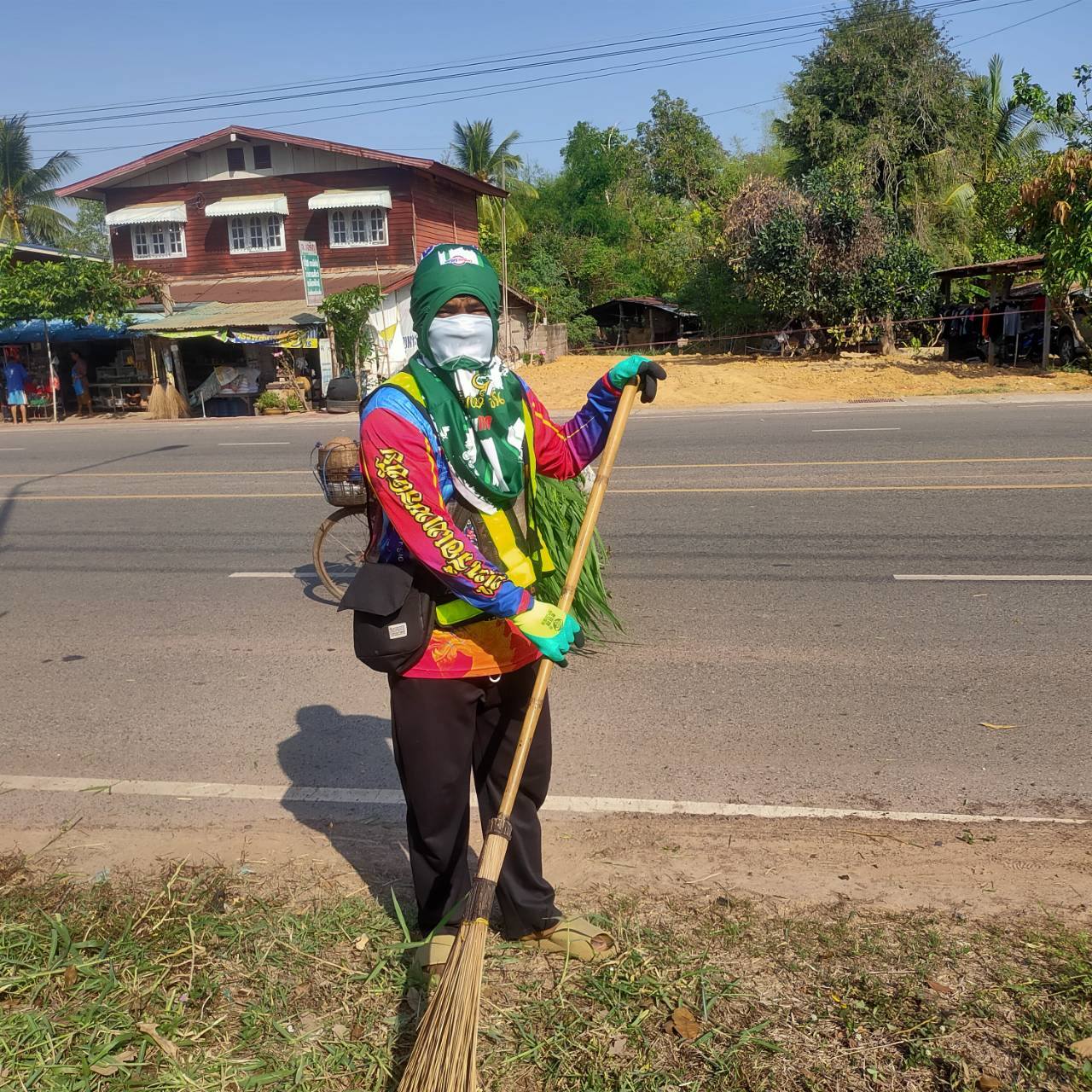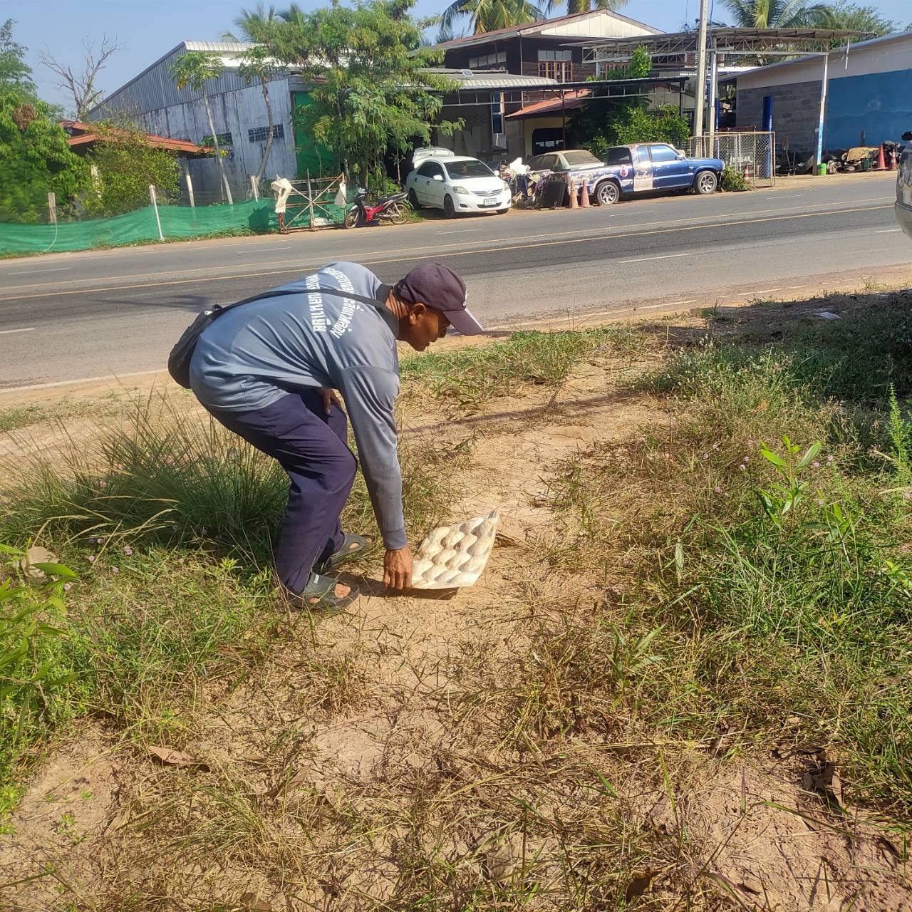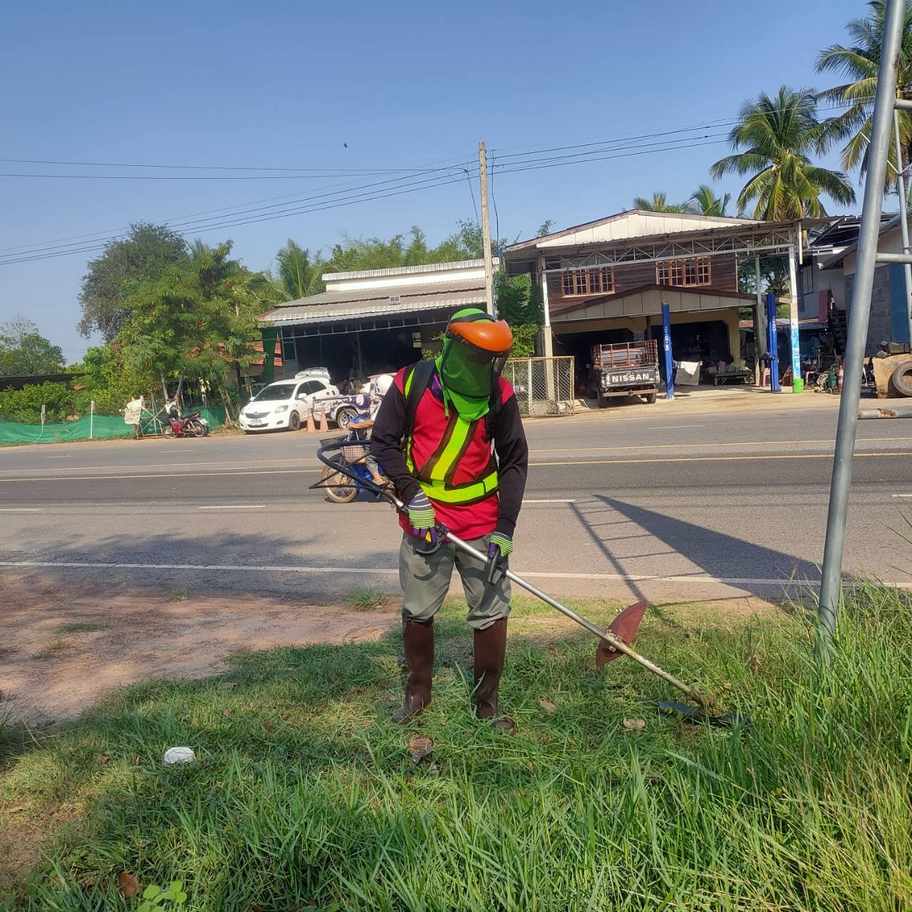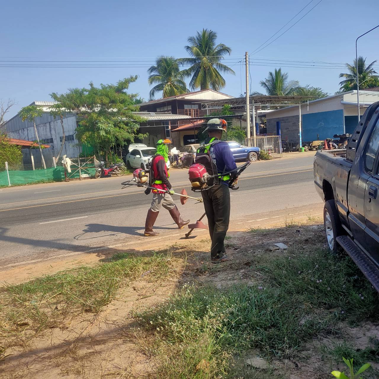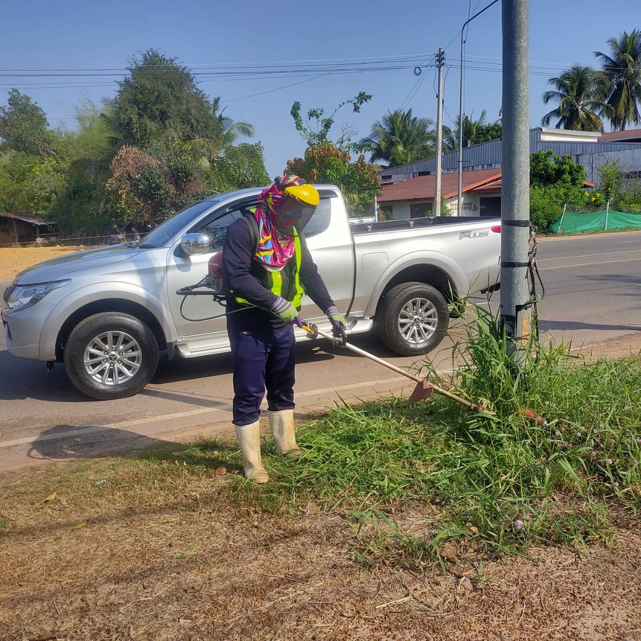 งานรักษาความสะอาด กองสาธารณสุขและสิ่งแวดล้อมลงพื้นที่ปฏิบัติงาน ตัดหญ้าและทำความสะอาดบริเวณไหล่ทางสองข้างทาง
