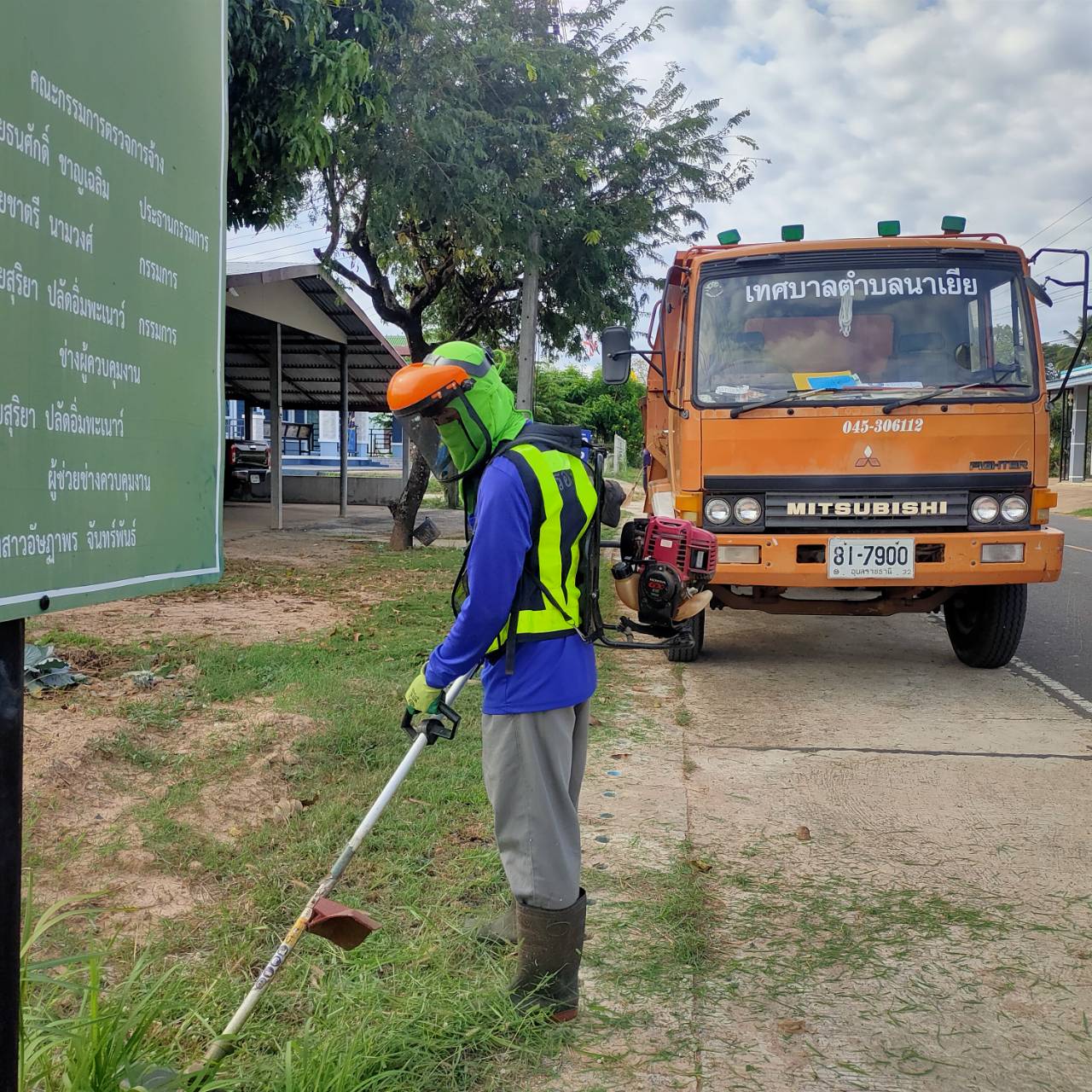 นางสาวชัญญานุช สายทอง นายกเทศมนตรีตำบลนาเยีย มอบหมายเจ้าหน้าที่ งานรักษาความสะอาด กองสาธารณสุขและสิ่งแวดล้อม ลงพื้นที่ปฏิบัติงาน ตัดหญ้าและทำความสะอาดบริเวณไหล่ทางสองข้างทาง