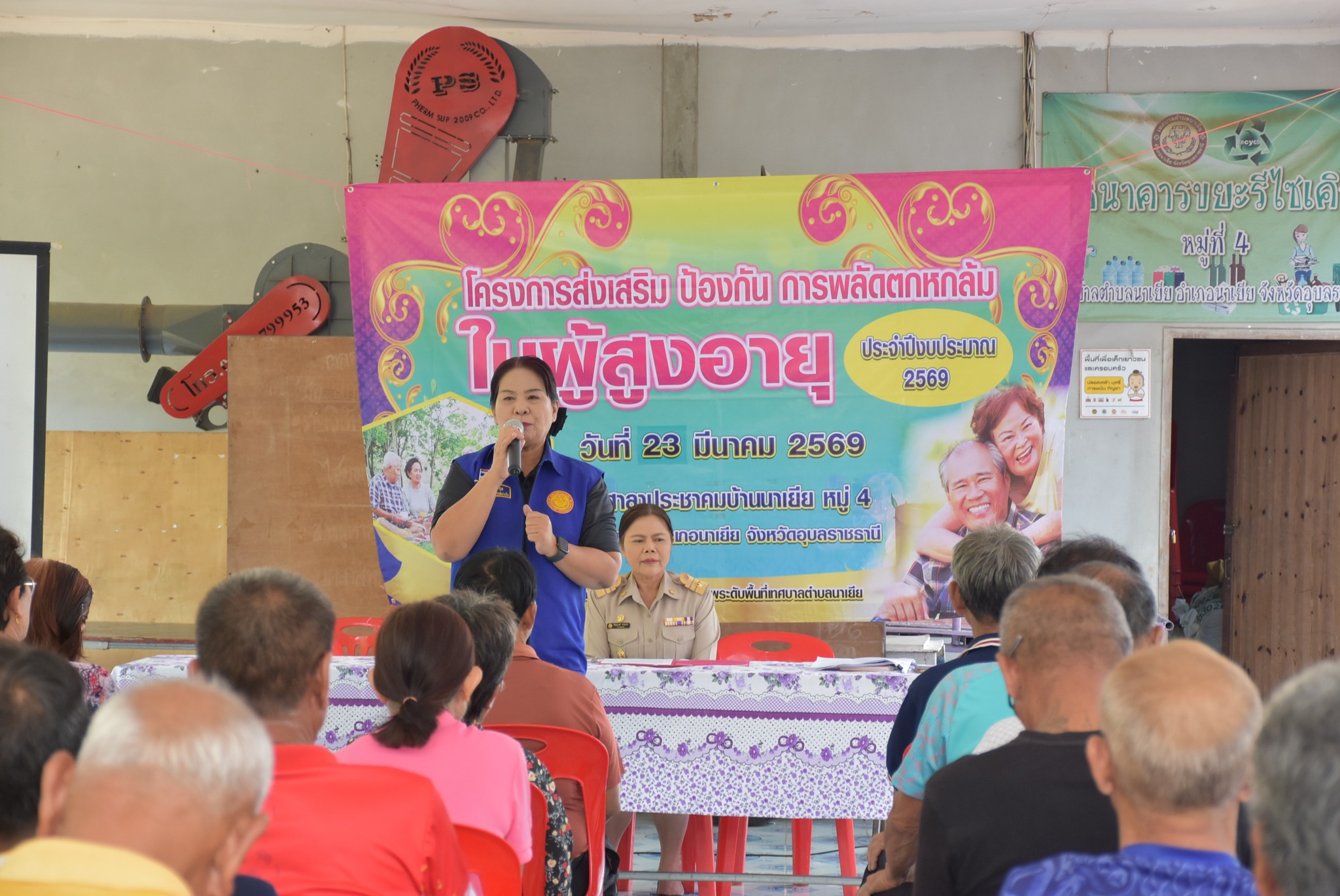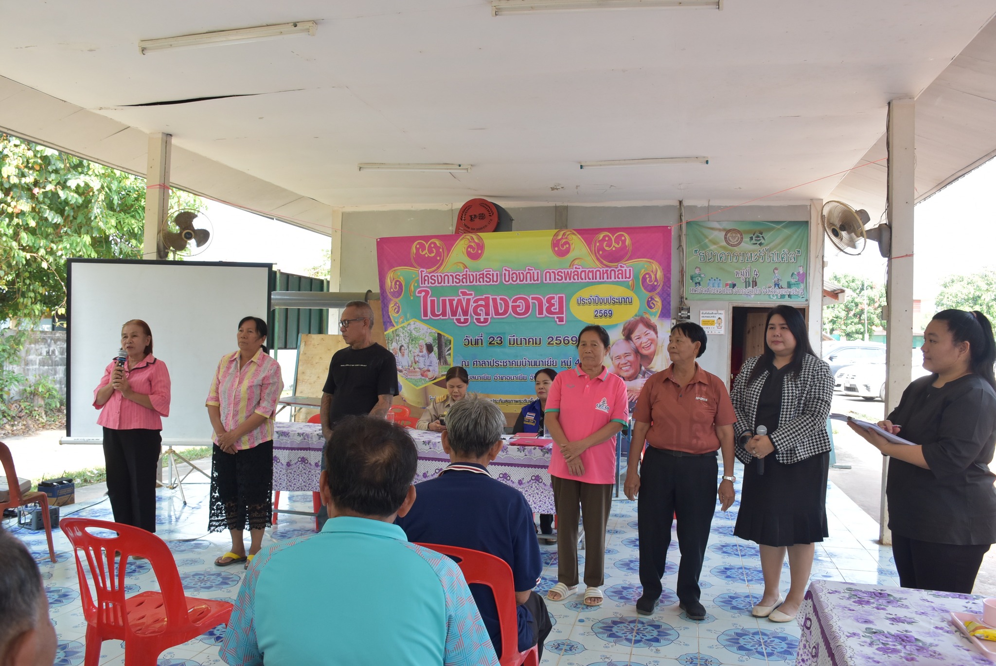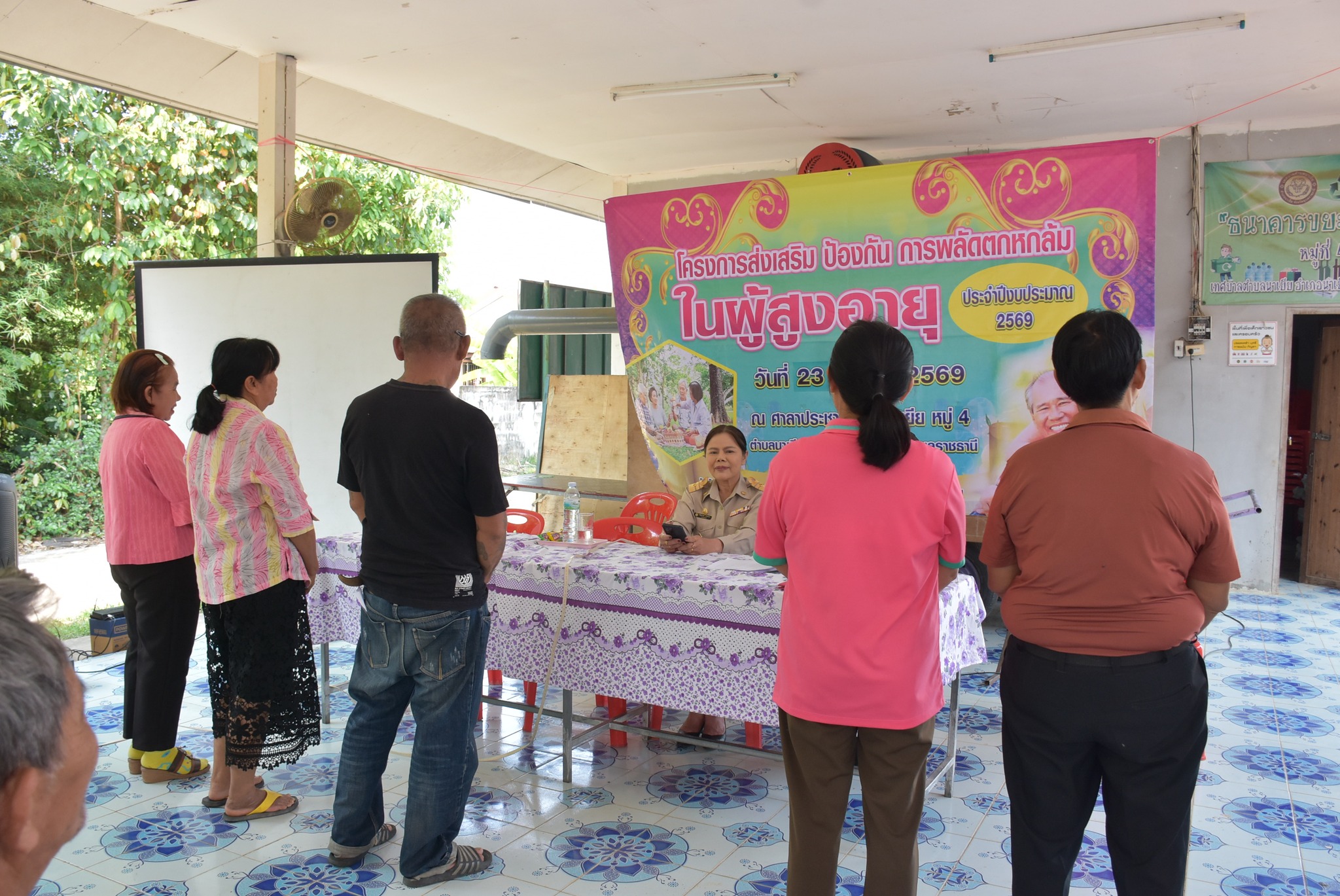 พิธีเปิดประชุมประชาคมการมีส่วนร่วมของประชาชนในการคัดเลือกคณะกรรมการบริหารชมรมผู้สูงอายุ หมู่ที่ 4 ร่วมกับโครงการส่งเสริมและป้องกันการพลัดตกหกล้มในผู้สูงอายุ